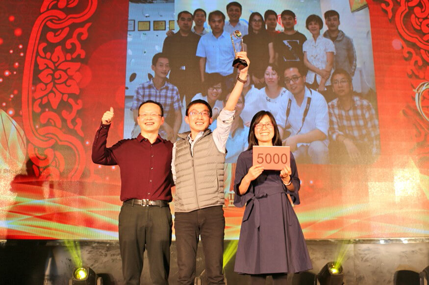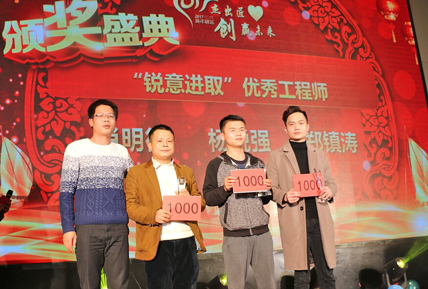 作为整场年会的重头戏,颁奖典礼隆重而喜庆。在阵阵热烈的掌声和欢呼声中,获奖的先进个人和团队一一揭晓,登台领奖。优秀项目经理、优秀工程师、优秀技术员、优秀施工员、优秀实习生、优秀员工、最佳服务之星、最佳长驻明星、最佳外派之星、最佳项目组(大亚湾项目组)、精诚合作奖(深圳团队)、锐意开拓奖(福建团队)、天降雄兵(蓝玛星际),共13组奖项,27位优秀个人,4个先进团队,成为了年会上最闪耀的主角。
